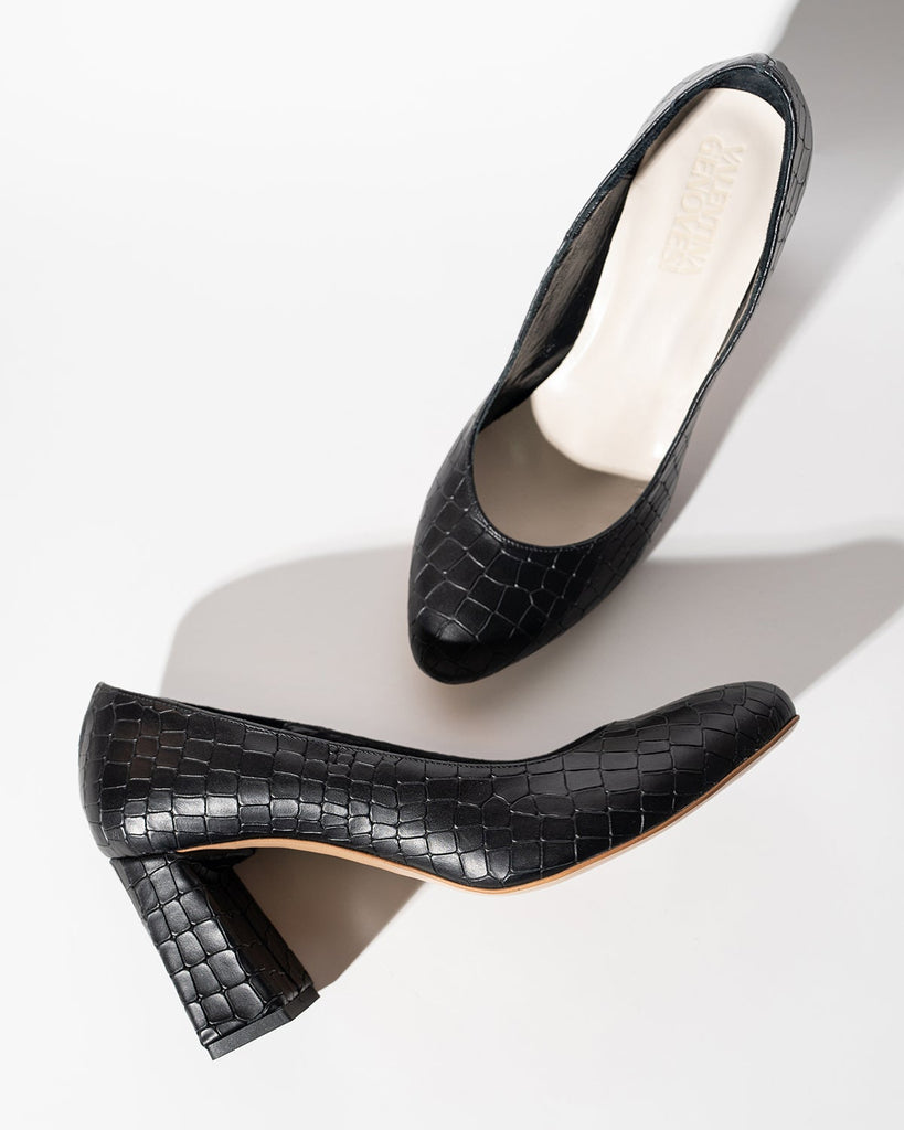 Décolleté con punta a mandorla in pelle stampa cocco nera.