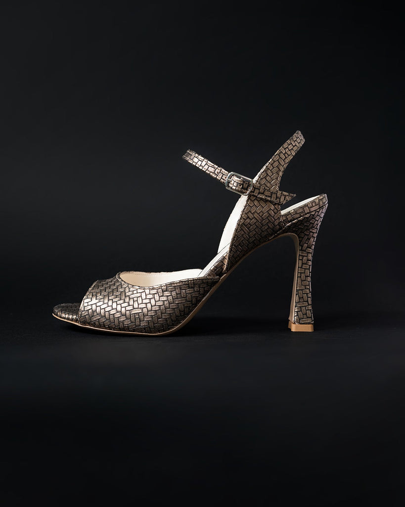 Sandalo in pelle stampata color bronzo.